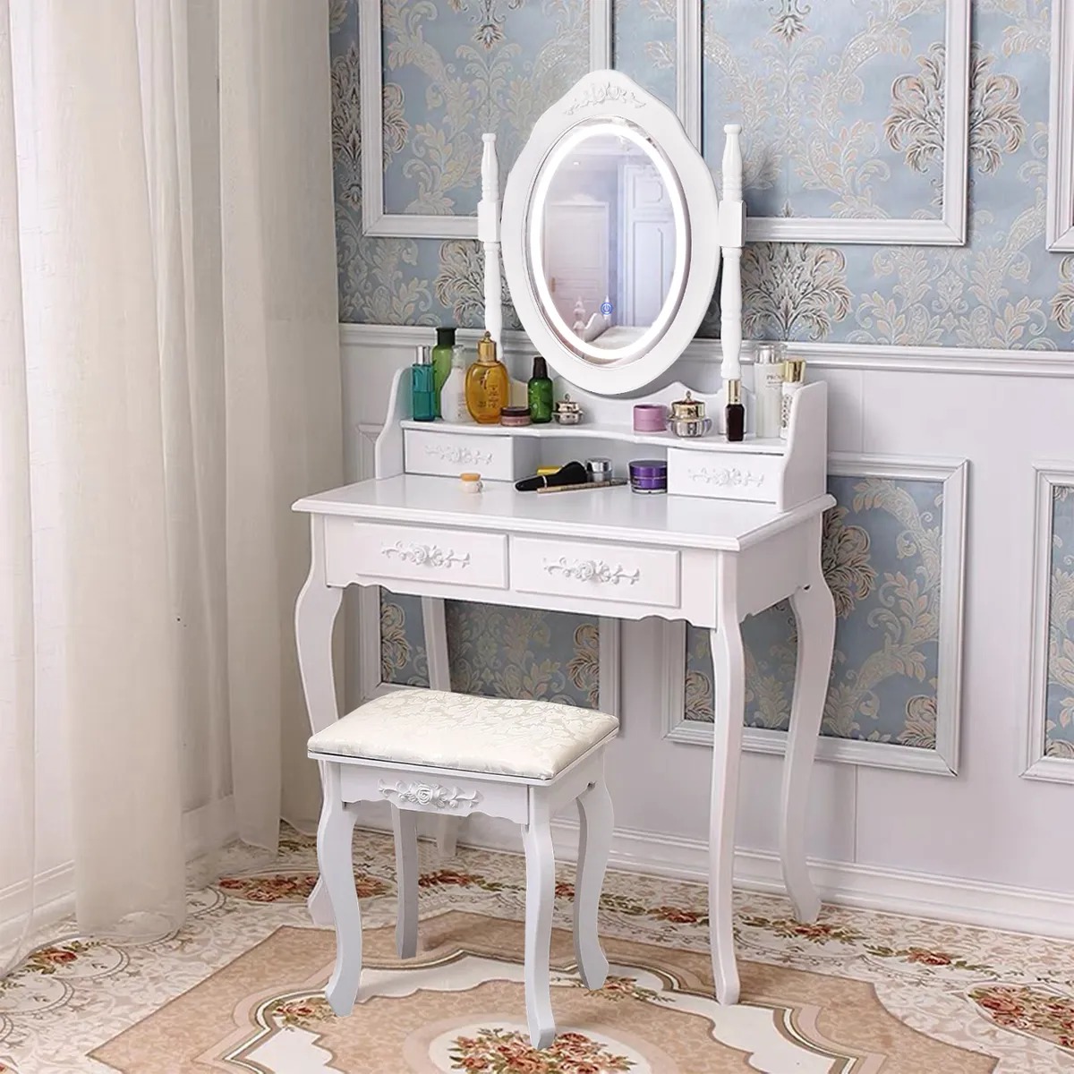Tocador 4 cajones, espejo con iluminación led y repisa