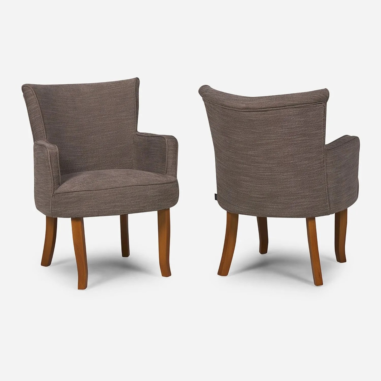 Las poltronas Emily destacan por su diseño clásico y sofisticado. En cuanto a su estructura es de madera muy firme y resistente. Sus patas de madera de caucho cuentan con topes plásticos para mayor estabilidad y su tapiz 100% poliéster es muy duradero.