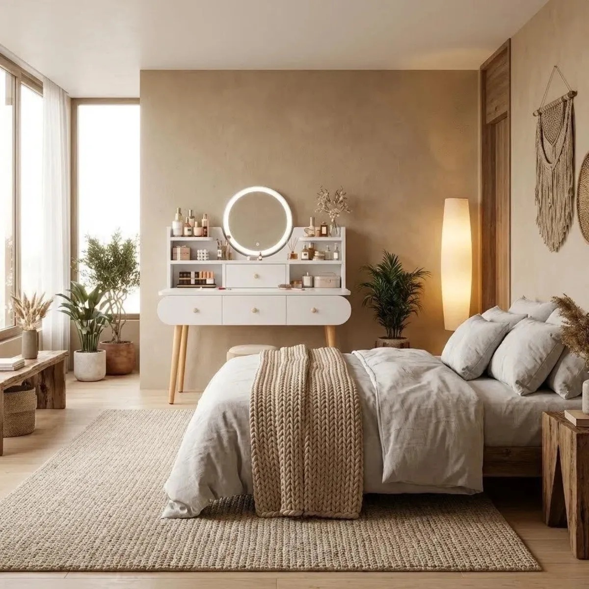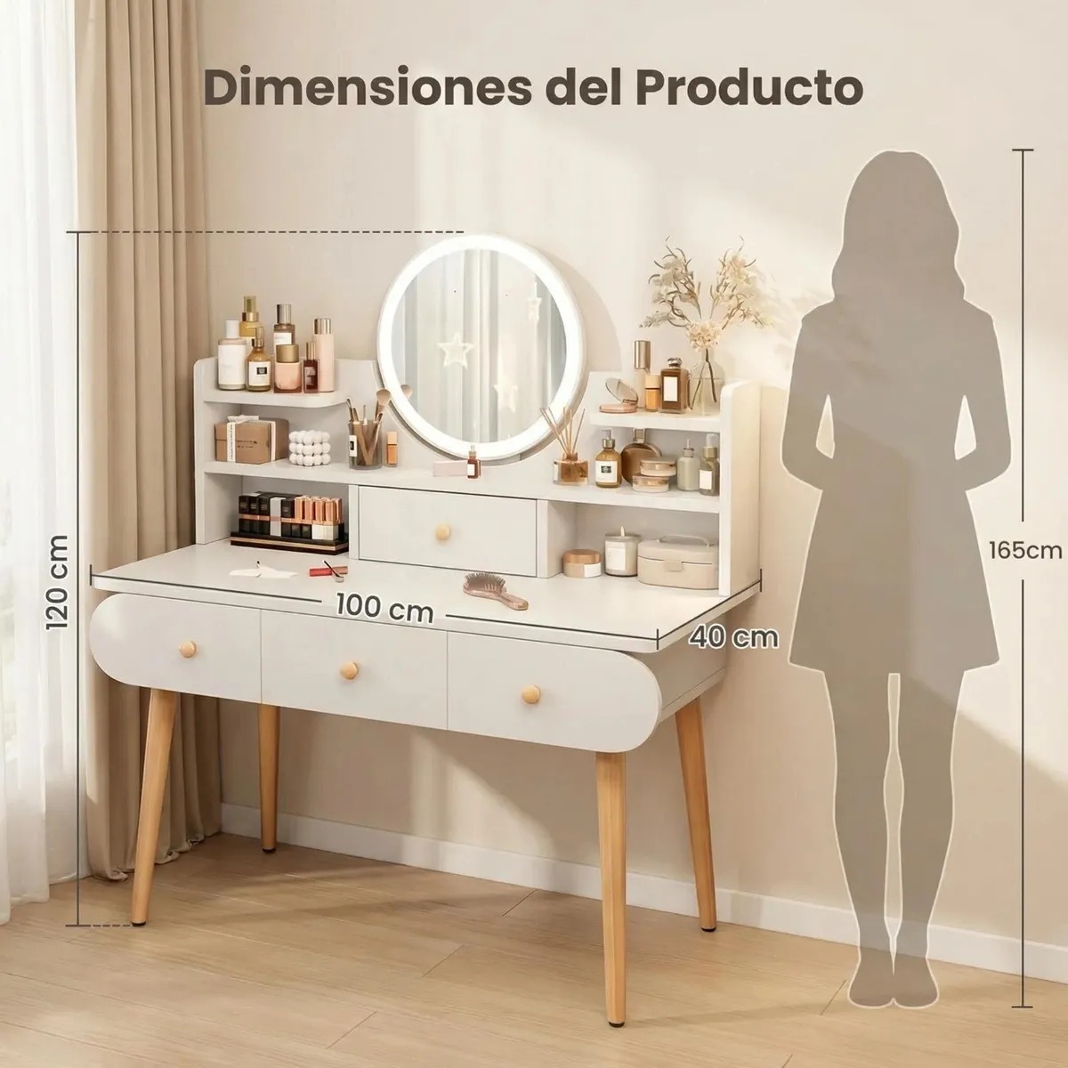 Tocador 4 cajones, espejo con iluminación led y repisa
