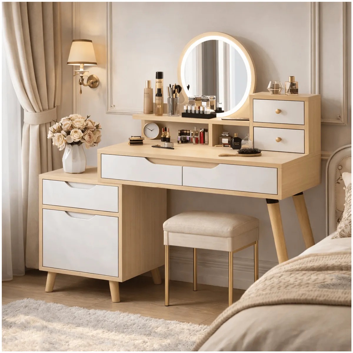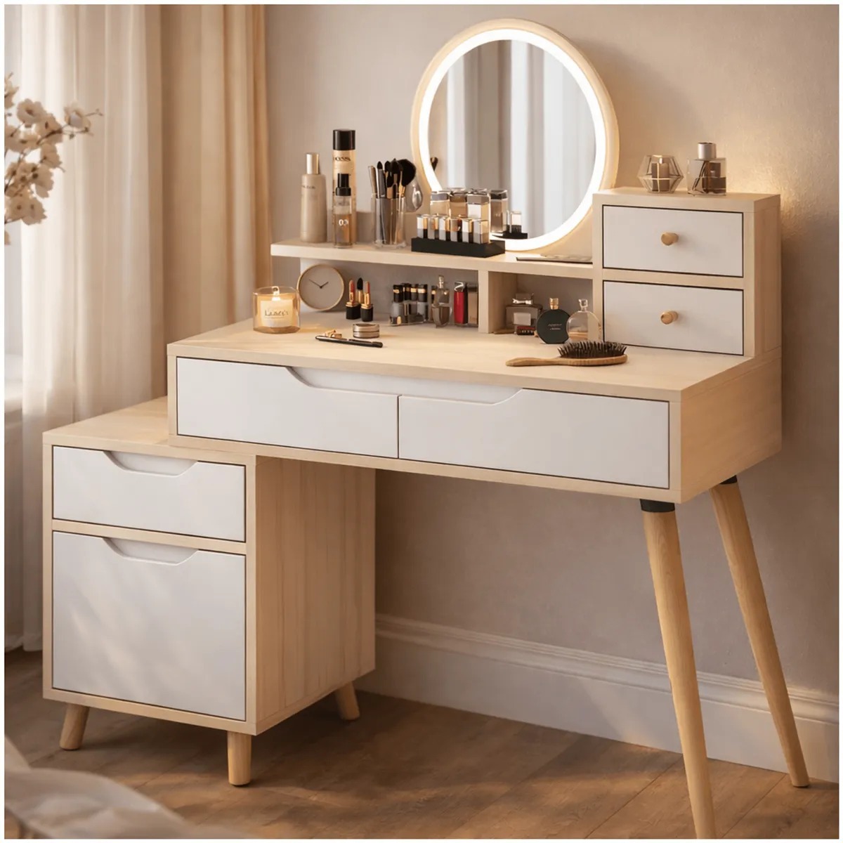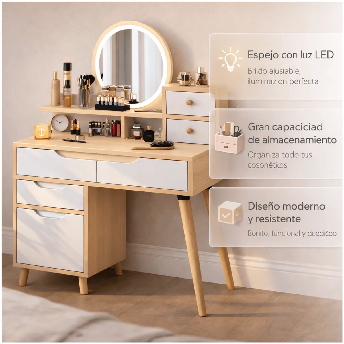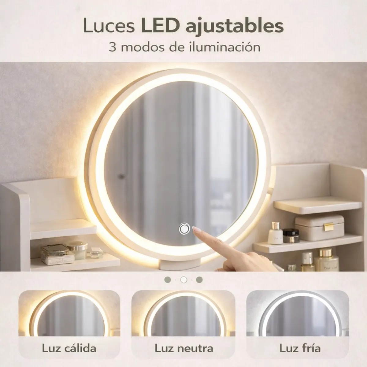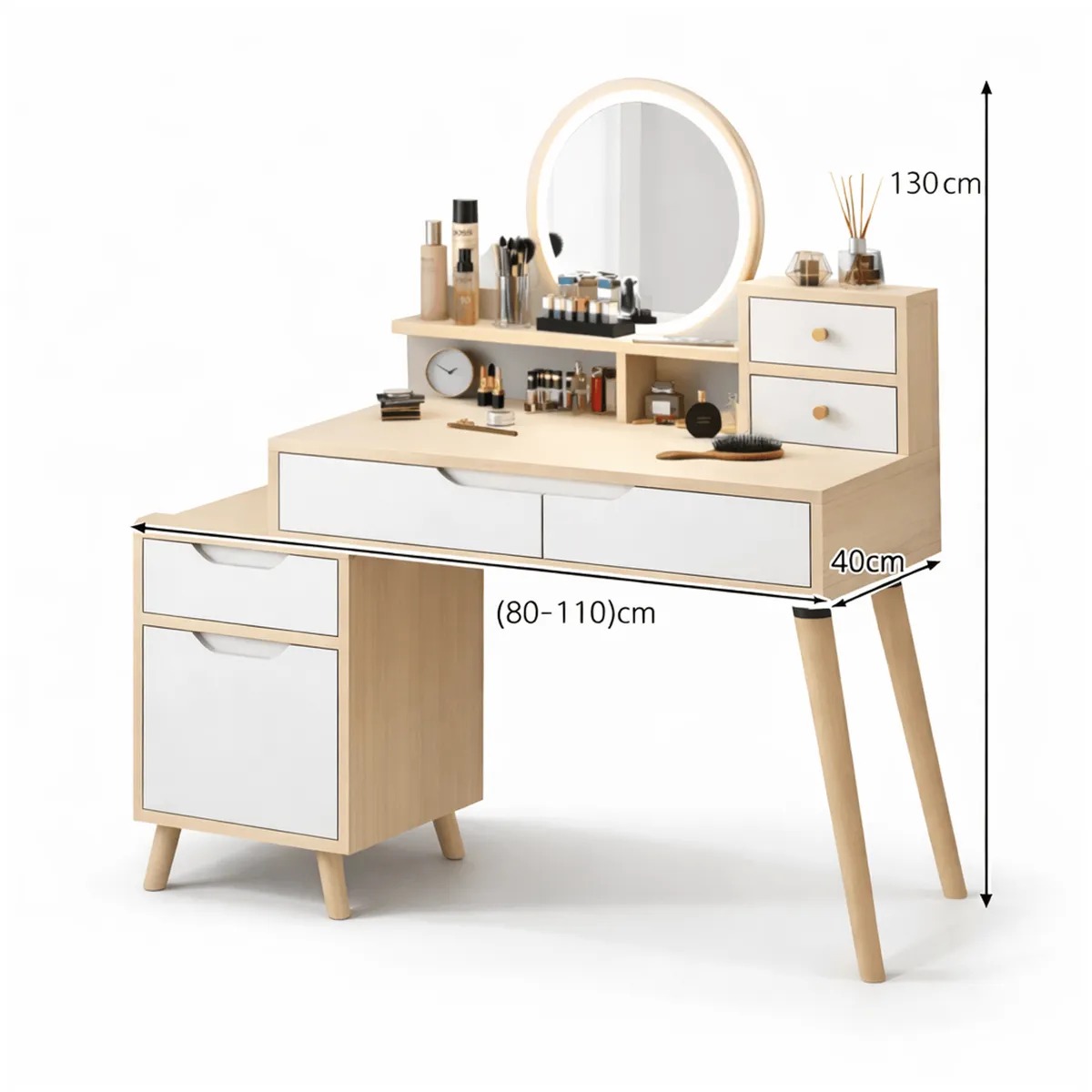 Tocador Con Espejo De Luz Comoda Extendible 130x40x110cm